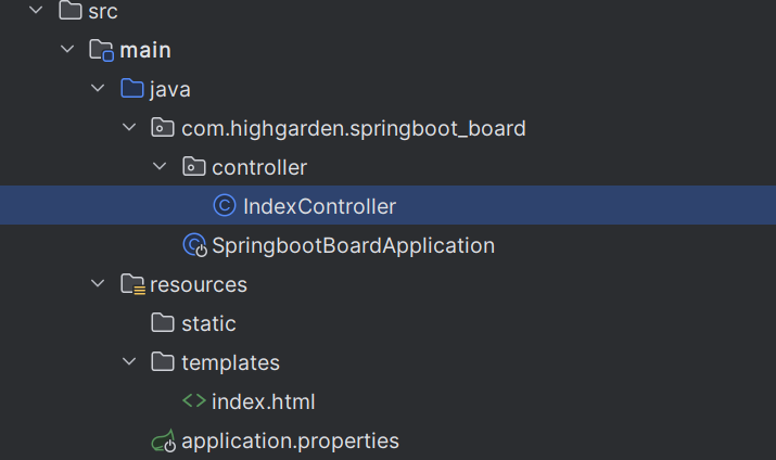 이제 서버로의 요청을 index.html로 연결해 줄 Controller를 생성해야 한다.