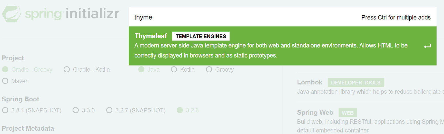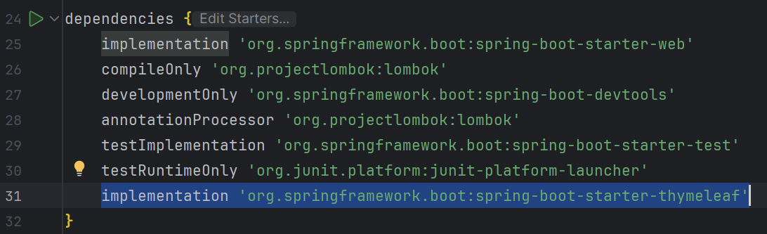 implementation 'org.springframework.boot:spring-boot-starter-thymeleaf'