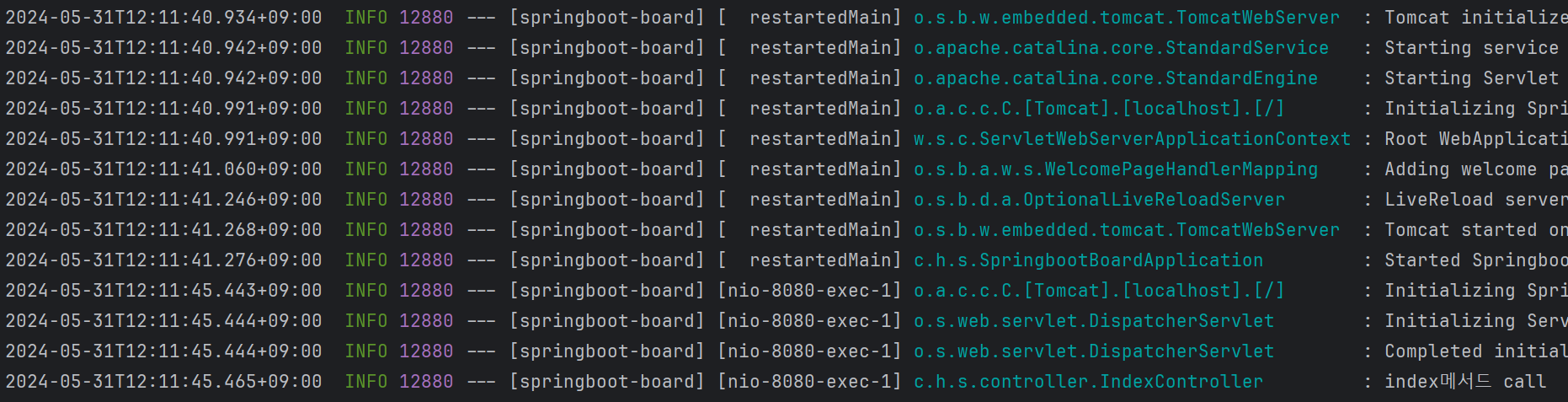 로그를 확인해 보니 index 메서드도 잘 실행되었음을 확인할 수 있다.