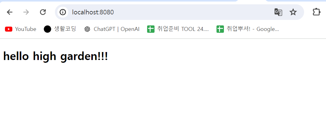 컨트롤러와 화면이 잘 연동이 되었다면 index.html에 작성한 글씨가 위처럼 보일 것이다.