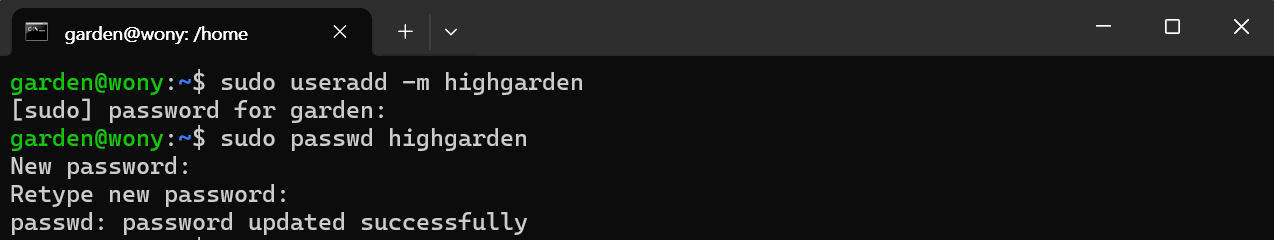 sudo useradd -m highgarden