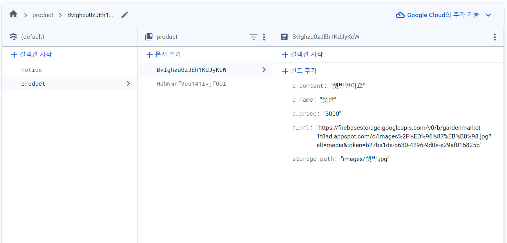 Firestore의 구조는 매우 단순하다. Collection이라는 문서를 담는 컨테이너가 있고 Collection 안에 문서(doc)가 들어있다. doc은 필드라는 속성과 값을 갖는다. 이게 끝이다. 쉽게 예를 들자면 collection이라는 파일(file) 안에 문서(doc)가 들어있고 그 내용물이 필드(속성과 값)이다. 일반적인 컴퓨터 파일구조와 유사하다. 데이터 추가하는 방법도 그냥 클릭 몇 번 하고 속성과 값을 글씨로 쳐서 넣으면 끝이다. 물론 이렇게 사용할 일은 거의 없다. 일반적인 RDBMS는 데이터 구조를 이해하는데 많은 시간이 필요하지만 파이어스토어는 이미 널리 사용 중인 파일구조를 선택했기 때문에 초기 학습이 거의 필요 없다.