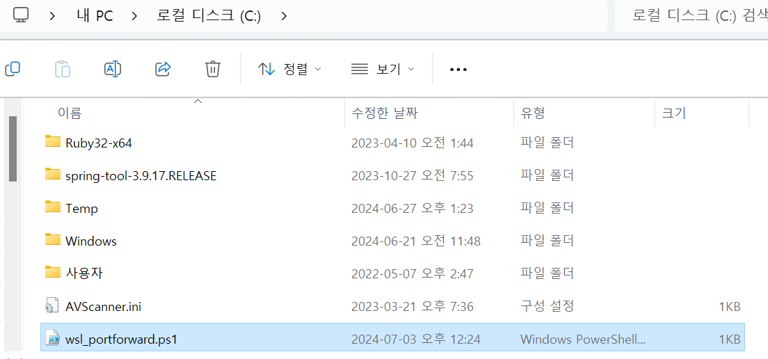 이제 이 스크립트만 실행되면 wsl ip는 마치 고정 ip인 것처럼 사용이 가능하다. 어떻게 변경이 되어도 새로 포트포워딩을 해주기 때문이다. 이제 마지막 하나의 작업이 남았다. 다음 시간에는 이 스크립트가 윈도우가 부팅될 때마다 실행될 수 있도록 작업 스케줄러에 스크립트를 등록해 보고 테스트해보도록 하자.