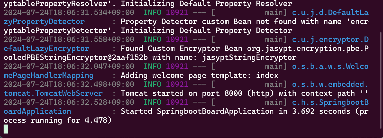 JASYPT_ENCRYPTOR_PASSWORD=password java -jar springboot-board-0.0.1-SNAPSHOT.jar