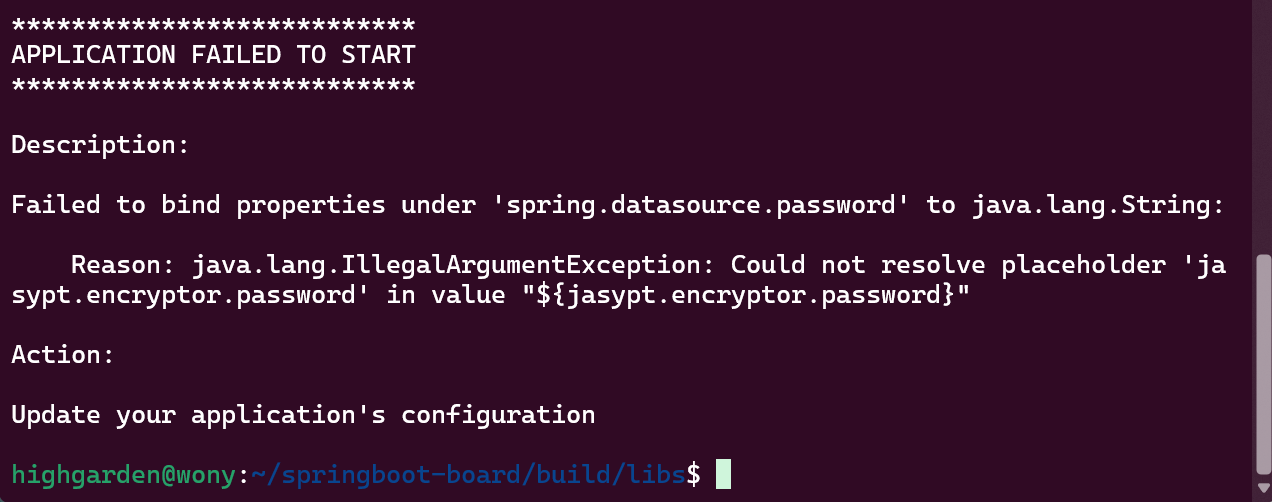 JASYPT_ENCRYPTOR_PASSWORD=password java -jar springboot-board-0.0.1-SNAPSHOT.jar