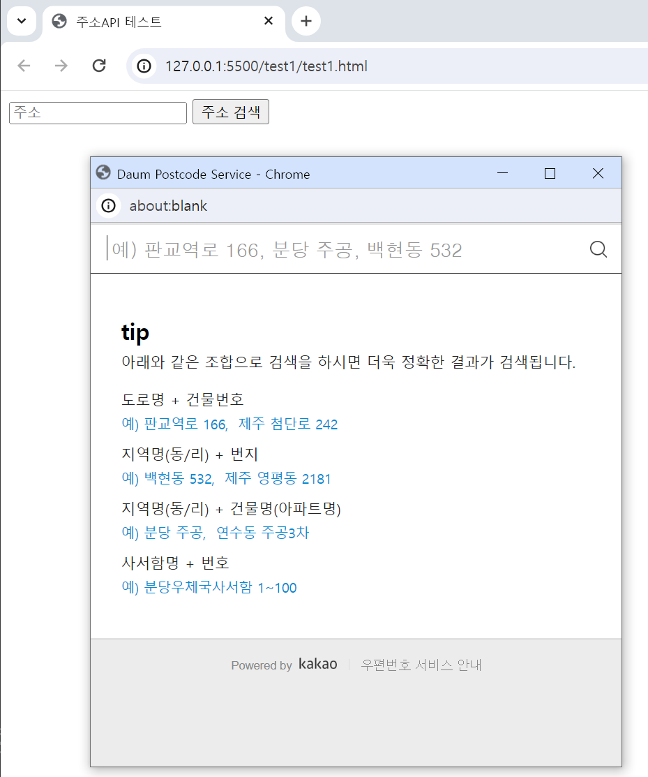 다음 주소api예제 코드 테스트